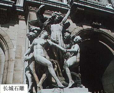 石雕藝術(shù)家卡爾波受當(dāng)代法國(guó)浪漫主義藝術(shù)影響,創(chuàng)作出自己的獨(dú)特藝術(shù)風(fēng)格。這座浮是他為巴黎新歌劇院正面墻壁而作的。作者的表現(xiàn)方法很大膽,把人物的自由動(dòng)作和強(qiáng)烈的運(yùn)動(dòng)感凝結(jié)在浮雕中,突破了學(xué)院派的只求穩(wěn)定但卻死板的形式。以致于有人曾非難指責(zé)說:“這遠(yuǎn)遠(yuǎn)越出了雕塑的范圍才這塊浮雕的構(gòu)圖在外輪廓處理上,不是照搬死板的四框形式,而是借用運(yùn)動(dòng)的形體邊緣連線,這就首先從整體上給人以強(qiáng)烈的動(dòng)勢(shì)感,把舞蹈的跳躍特征表達(dá)出來。形體沒有被壓縮,而是近乎圓雕,給人以實(shí)體強(qiáng)烈奪框而出的感覺。中央人物直立,雙臂高舉,右手搖著手鼓,造成向外放射的動(dòng)向線。包括面部表情所構(gòu)成的形體也是向外開放的,因而產(chǎn)生了奔放、歡快的感覺。一群裸女圍在中央人物周圍跳舞,動(dòng)作的豪放,充分顯示出狂歡的氣氛。在形式上,一圈舞蹈著的人物拉起的手臂組成一個(gè)弧圈形,把向外放射的形式收攏起來,使形體的自由跳動(dòng)統(tǒng)一于浮雕的整體范圍內(nèi);因而,使浮雕在有限的空間里展示著無限的生機(jī)勃勃的運(yùn)動(dòng)。作者繼承了法國(guó)浪漫主義雕塑家呂德的特點(diǎn),充分發(fā)揮了奔放不羈的構(gòu)思,不拘一格地表現(xiàn)了自己的感受,使石雕作品別具特色。