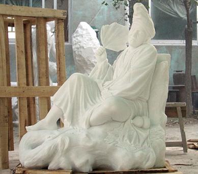 我廠制作的的石雕濟(jì)公像,面色和藹, 一半作笑狀,一半作哭狀,如“哭笑不得”,又似“非霎即哭’,在滑稽的造型中,蘊(yùn)含著深刻的寓意。這正是民間世俗幽默精神在佛教造像藝術(shù)中的集中反映。